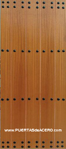 El tablero que aparece en la foto derecha, está fabricado en roble con color iroko con soporte marino apto para intemperie quedando la puerta acorazada completamente a línea o filo muro externo, por lo tanto la hoja tiene un grosor de 36 mm. y cuenta también con un bombillo de medidas especiales. La decoración es de alta gama por lo tanto el tiempo de fabricación es de aproximadamente 90 días.